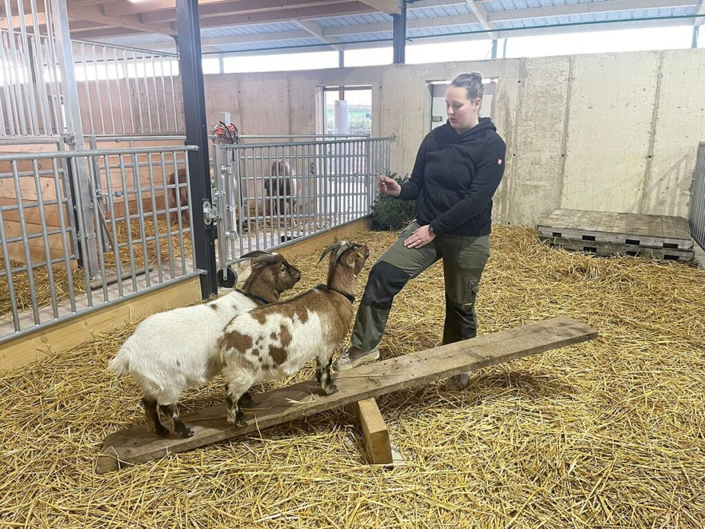 Wir gehen zusammen zu unseren Tieren, streicheln und versorgen diese.