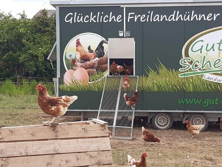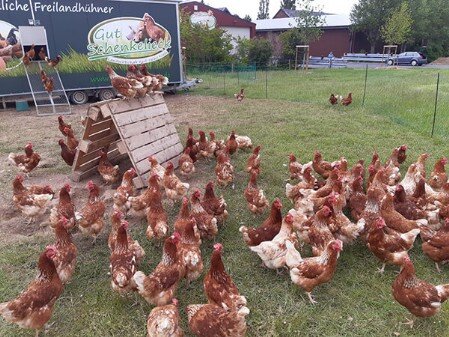 Unseren Hühnern kann man beim Tagesablauf sogar zuschauen und sich von ihrem glücklichen Dasein überzeugen.