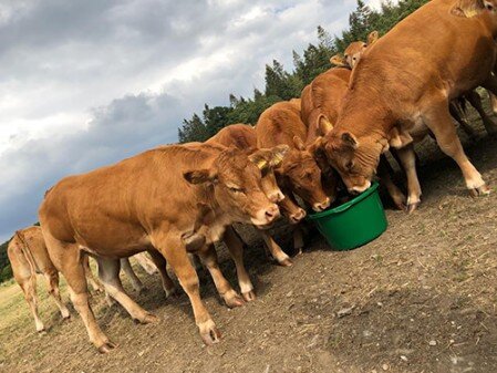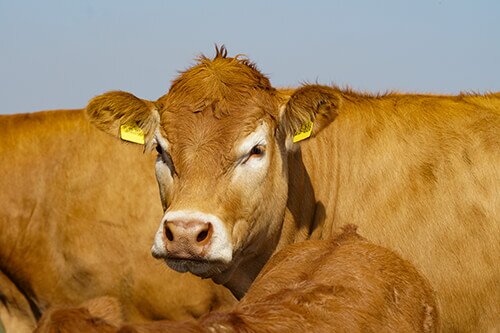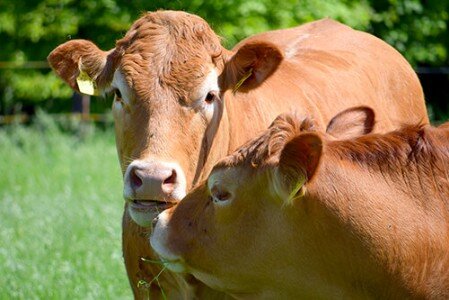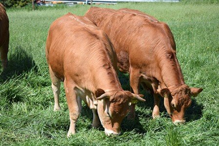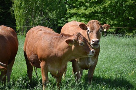 Unsere Limousin-Rinder sind eine robuste und genügsame Rasse und stammen ursprünglich aus der Region Limousin in Zentral-Frankreich. Besondere Vorzüge der Rasse sind die leichten Geburten, breite Becken, gute Zunahmen durch sehr gute Futterverwertung und natürlich die gute Fleischqualität. Die Rasse ist auch durch Langlebigkeit und Anpassungsfähigkeit bekannt. Eine Kuh ist erst nach 5 Jahren vollständig ausgewachsen und hat ihr volles Gewicht erreicht. Der Körperbau des Rinds zeichnet sich durch eine tiefe Flanke, einen langen Körper und eine gut entwickelte Bemuskelung aus.